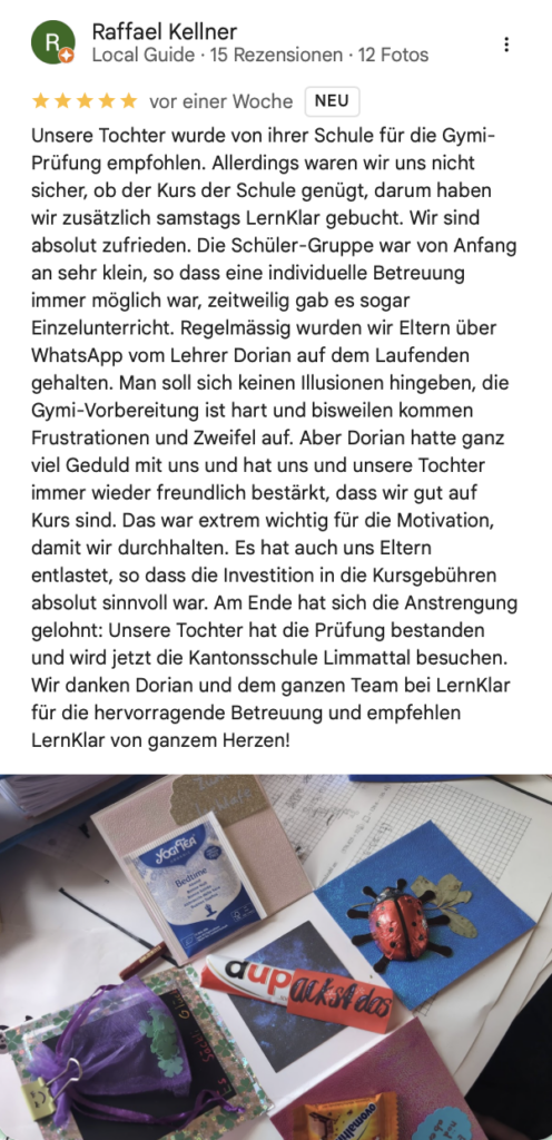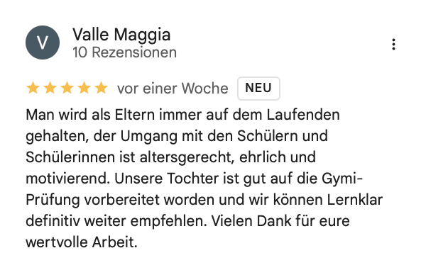 Keine Aushilfen – spezialisiert auf Gymivorbereitung.